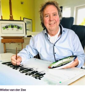 Zijn het nou echt alleen maar koeien die Wiebe schildert? “Nee, zeker niet”, is zijn stellige antwoord. “Ik schilder bijvoorbeeld ook regelmatig landschappen en andere dieren. Onlangs heb ik nog een Volvo in ruste geschilderd met de titel “ de heilige koe”. Maar met koeien ben ik wel letterlijk groot geworden. Dan zou het vreemd zijn als ik ineens overga op het schilderen van allemaal rode Ferrari ‘s. Ze noemen mij ook wel de koeienschilder. Daar ben ik best trots op.”