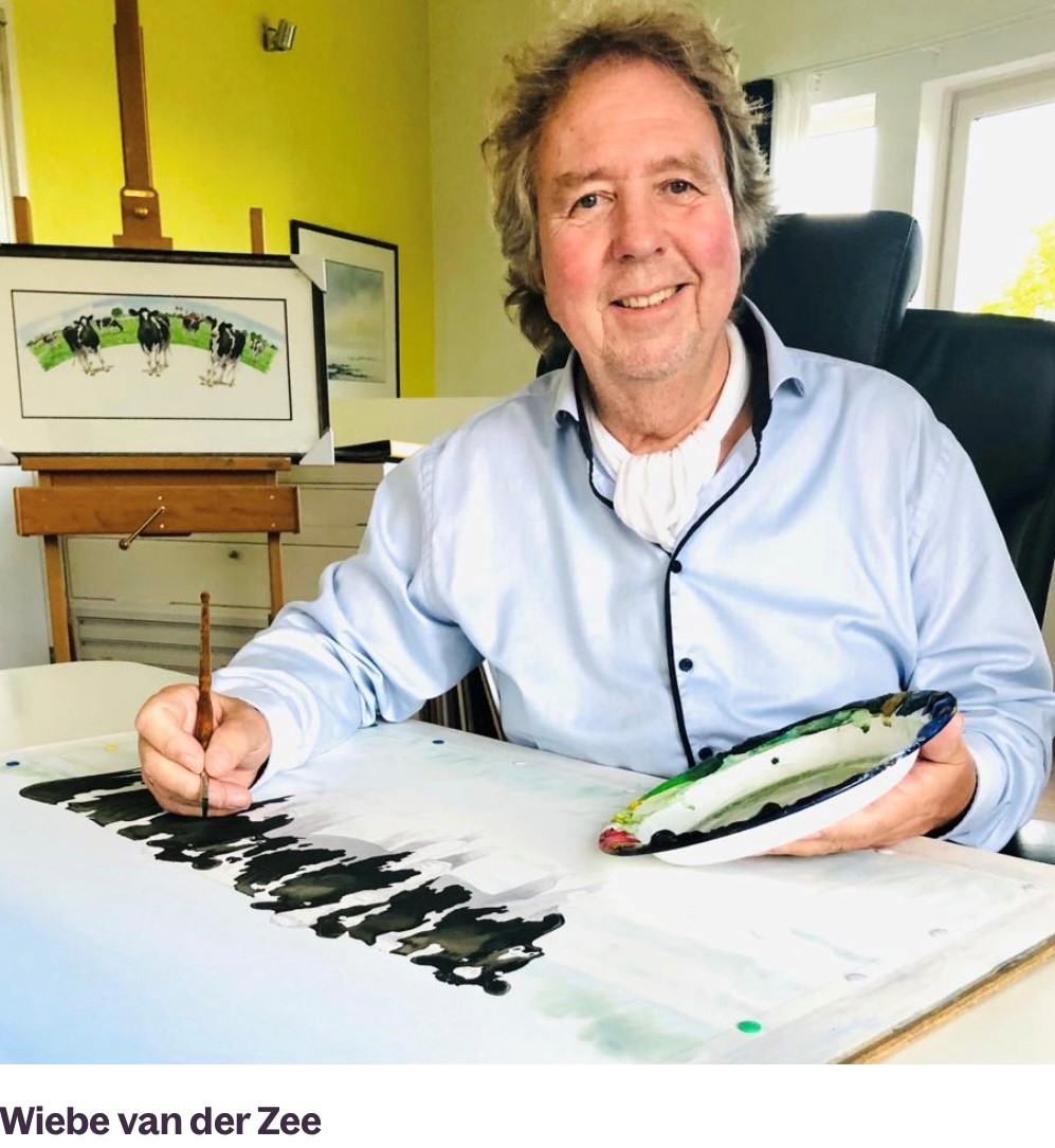SNEEK – Koeien fascineren Wiebe van der Zee (1953) uit Sneek. Zo erg zelfs, dat hij ze al zo’n dertig jaar schildert. “Noem koeien gerust mijn muze. Hun nieuwsgierigheid en kuddegedrag vind ik interessant. Ze hebben vaak een bijzondere uitdrukking op hun kop. Dat probeer ik in de schilderijen echt naar voren te brengen. De koeien moeten als het ware tot leven komen.”
